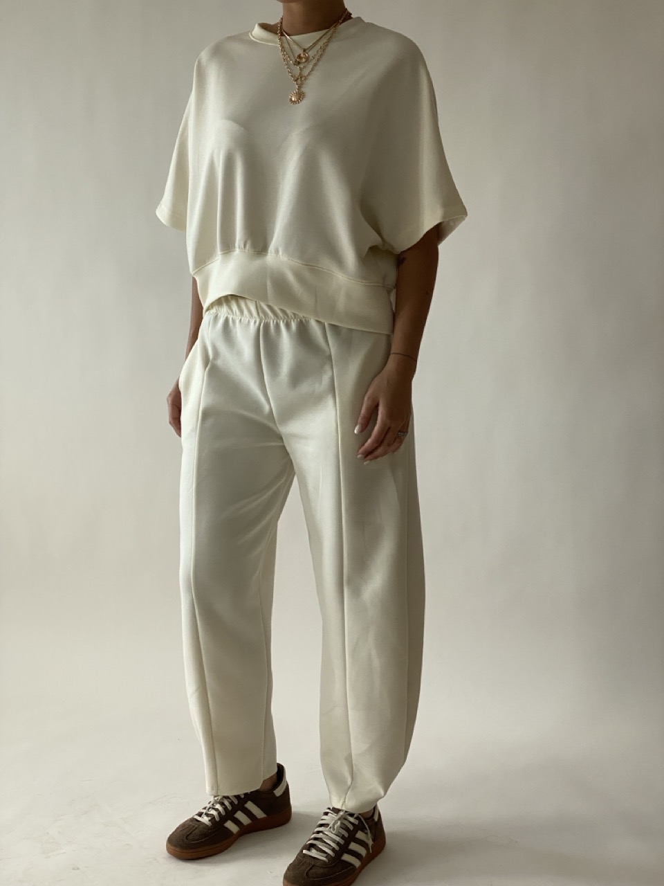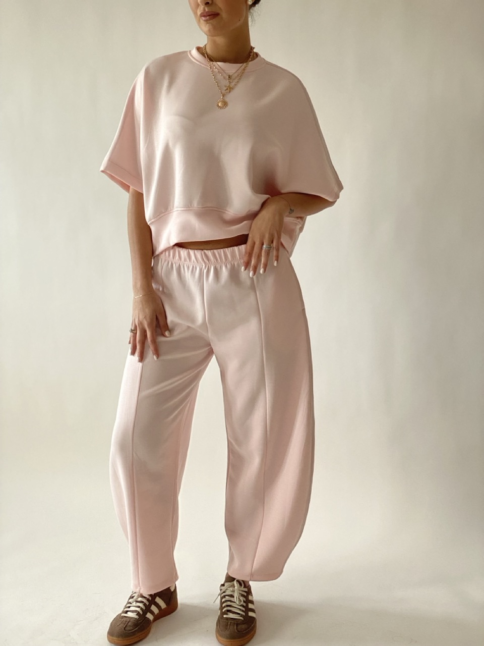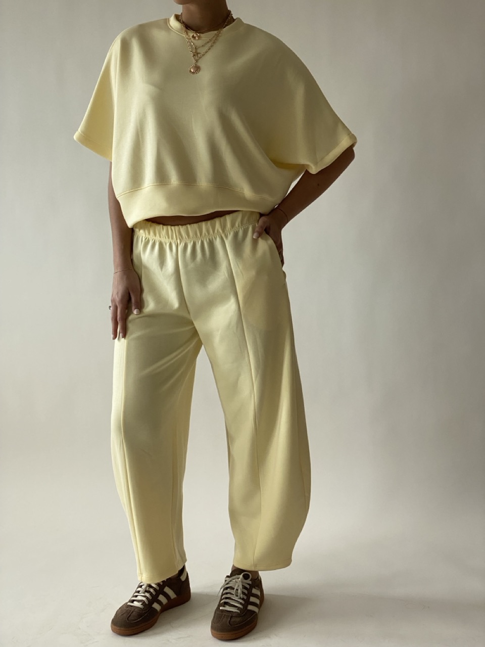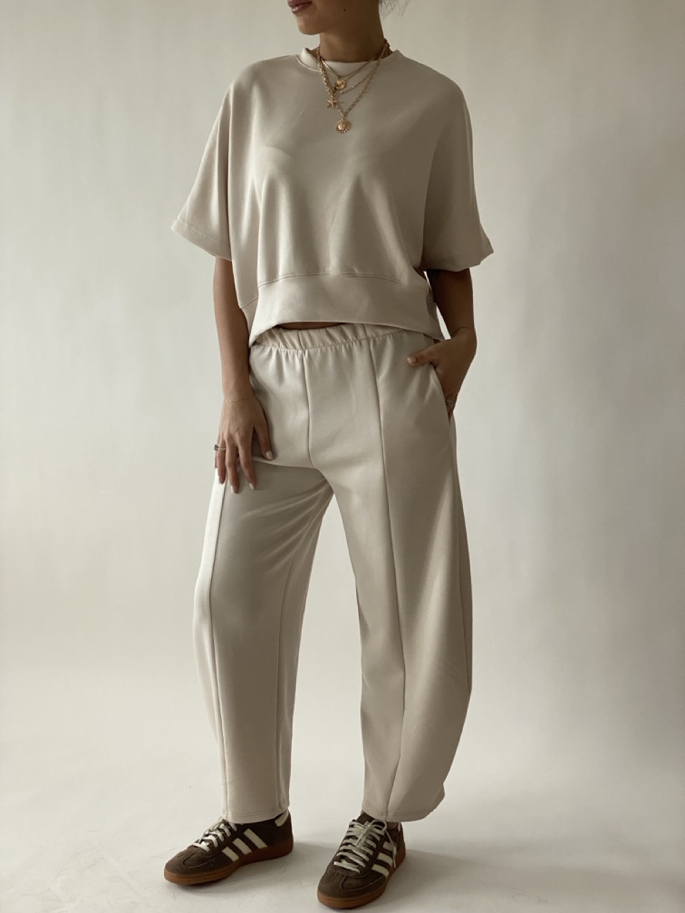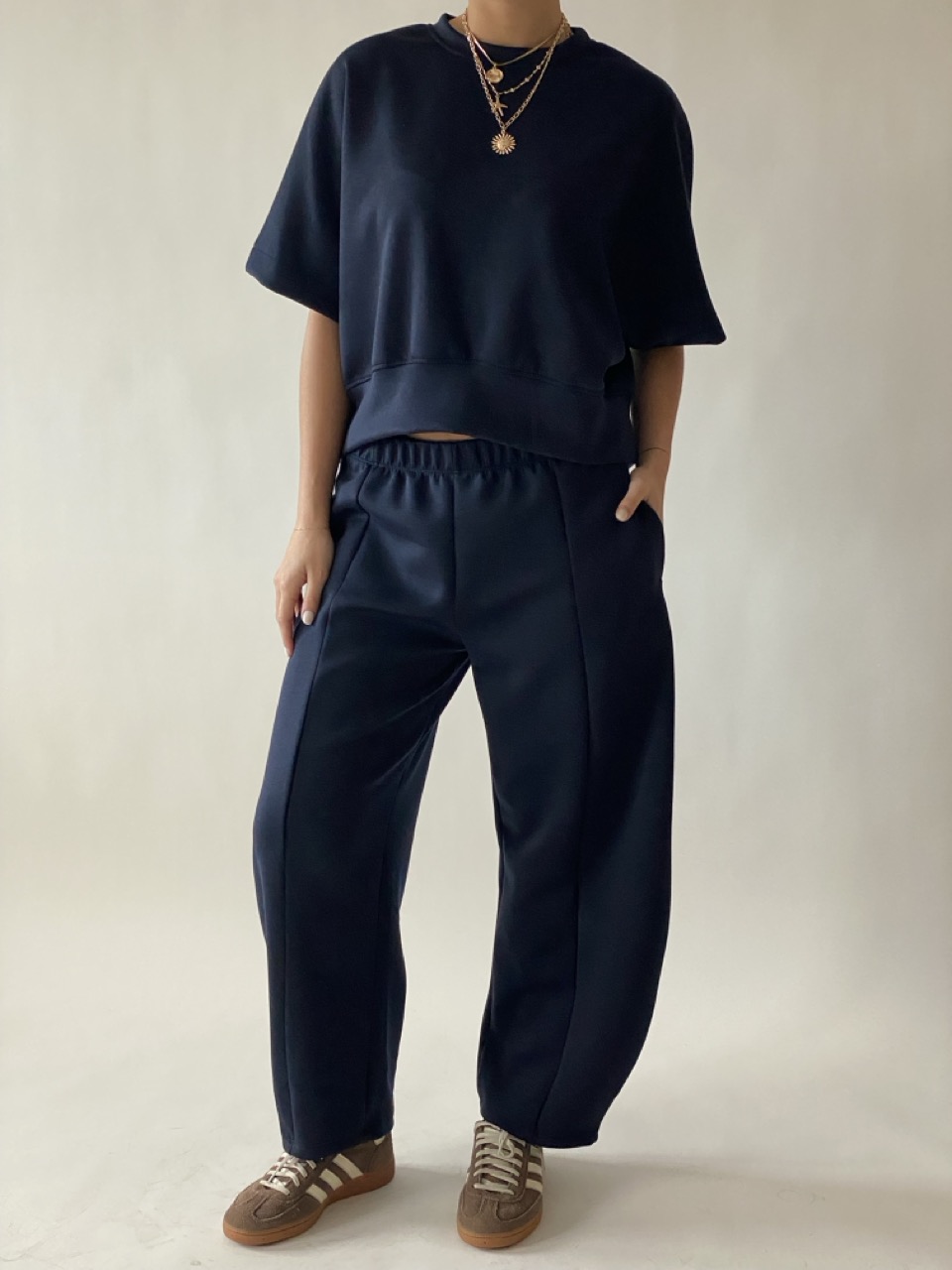 Pantalone fitness modello balloon con elastico in vita e tasche laterali.