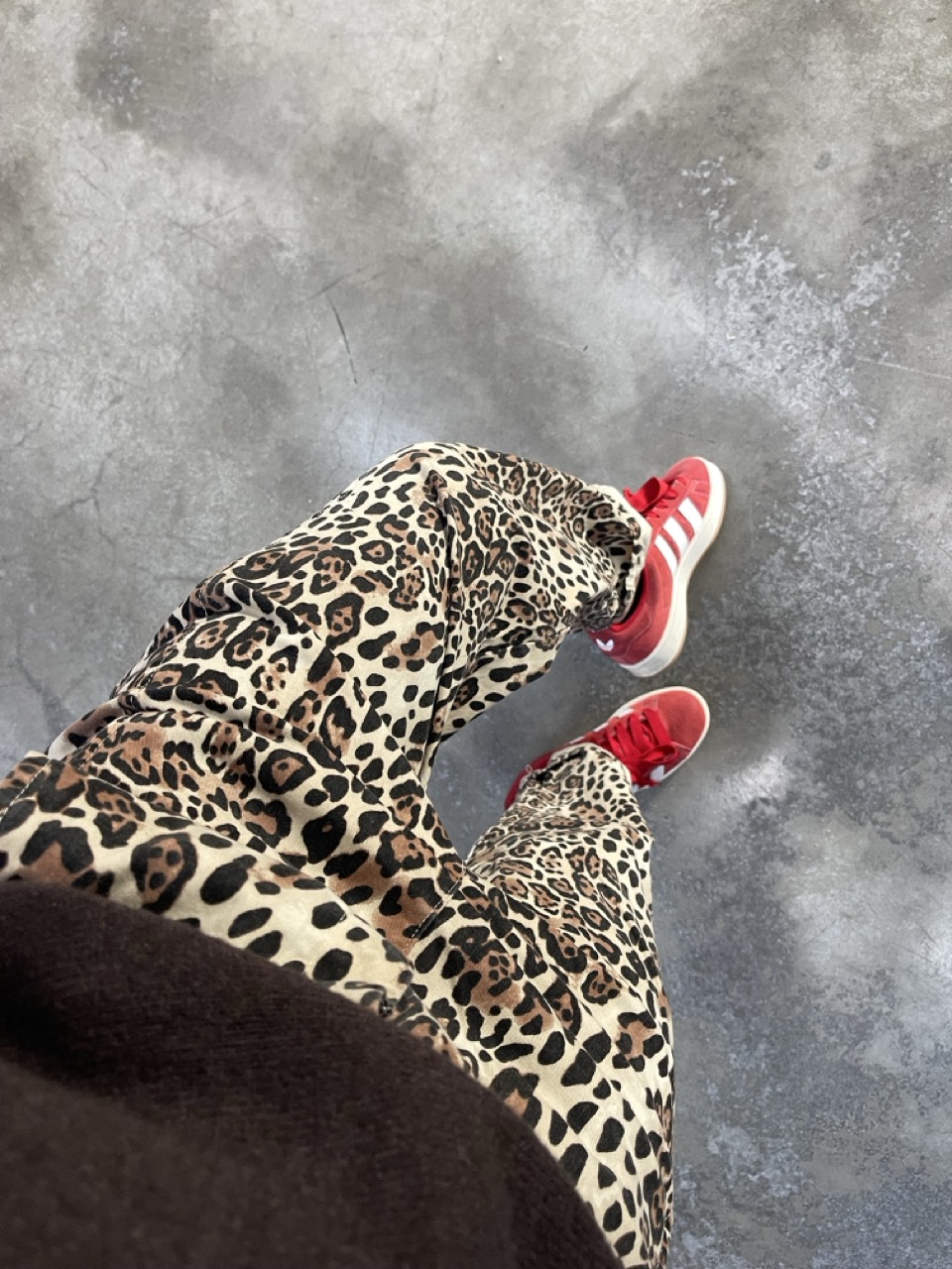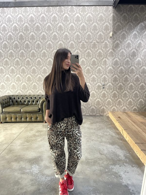 Pantalone mom fit in fantasia leopardata a vita medio alta con tasche laterali.