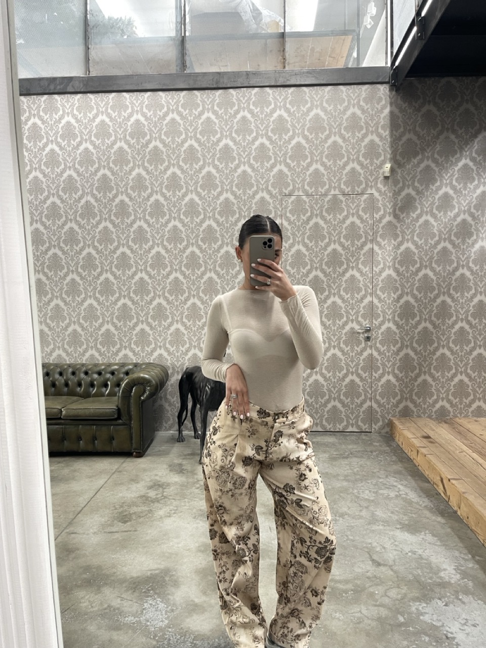 Pantalone in fantasia SUSY MIX a vita medio alta con tasche laterali.