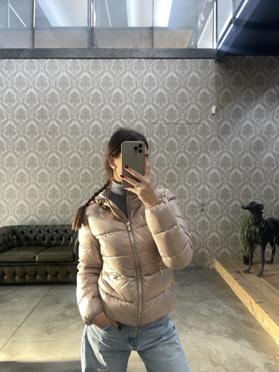Piumino YEZ-ZEE con cappuccio, tasche laterali e zip centrale come chiusura.