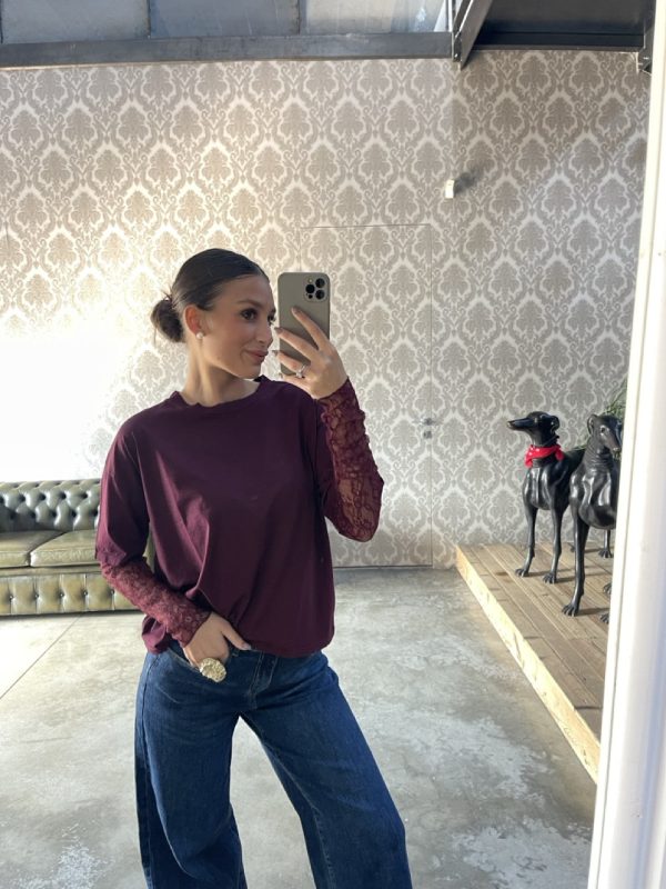 T-shirt SUSY MIX morbido a girocollo con maniche in pizzo.