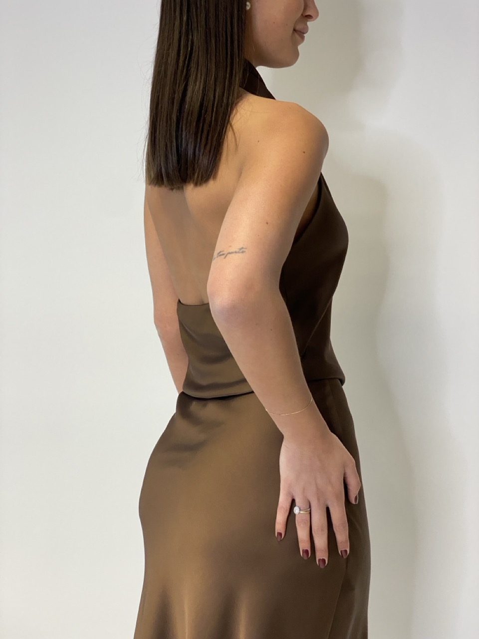 Top IMPERIAL effetto raso con schiena scoperta e scollo morbido.