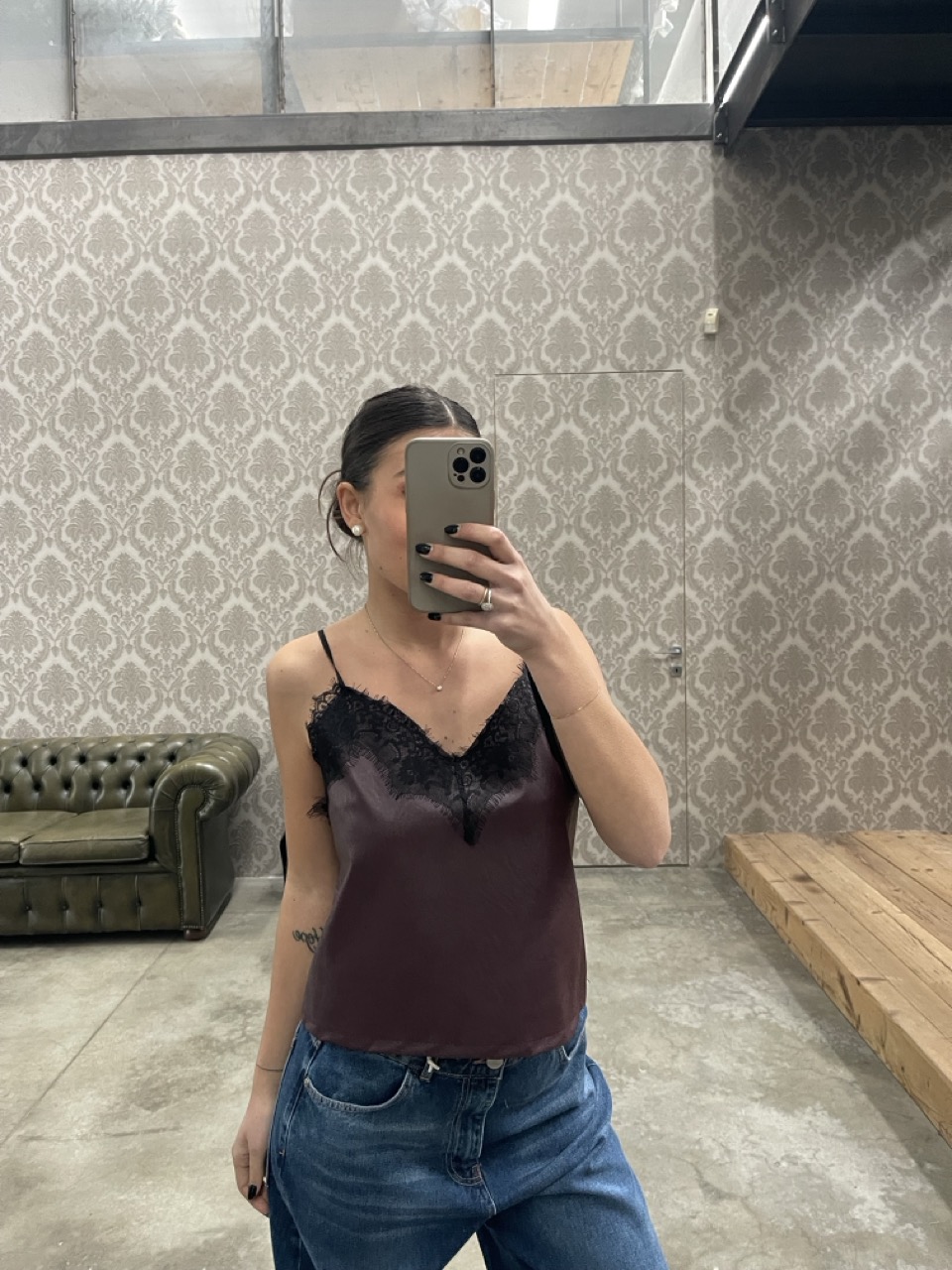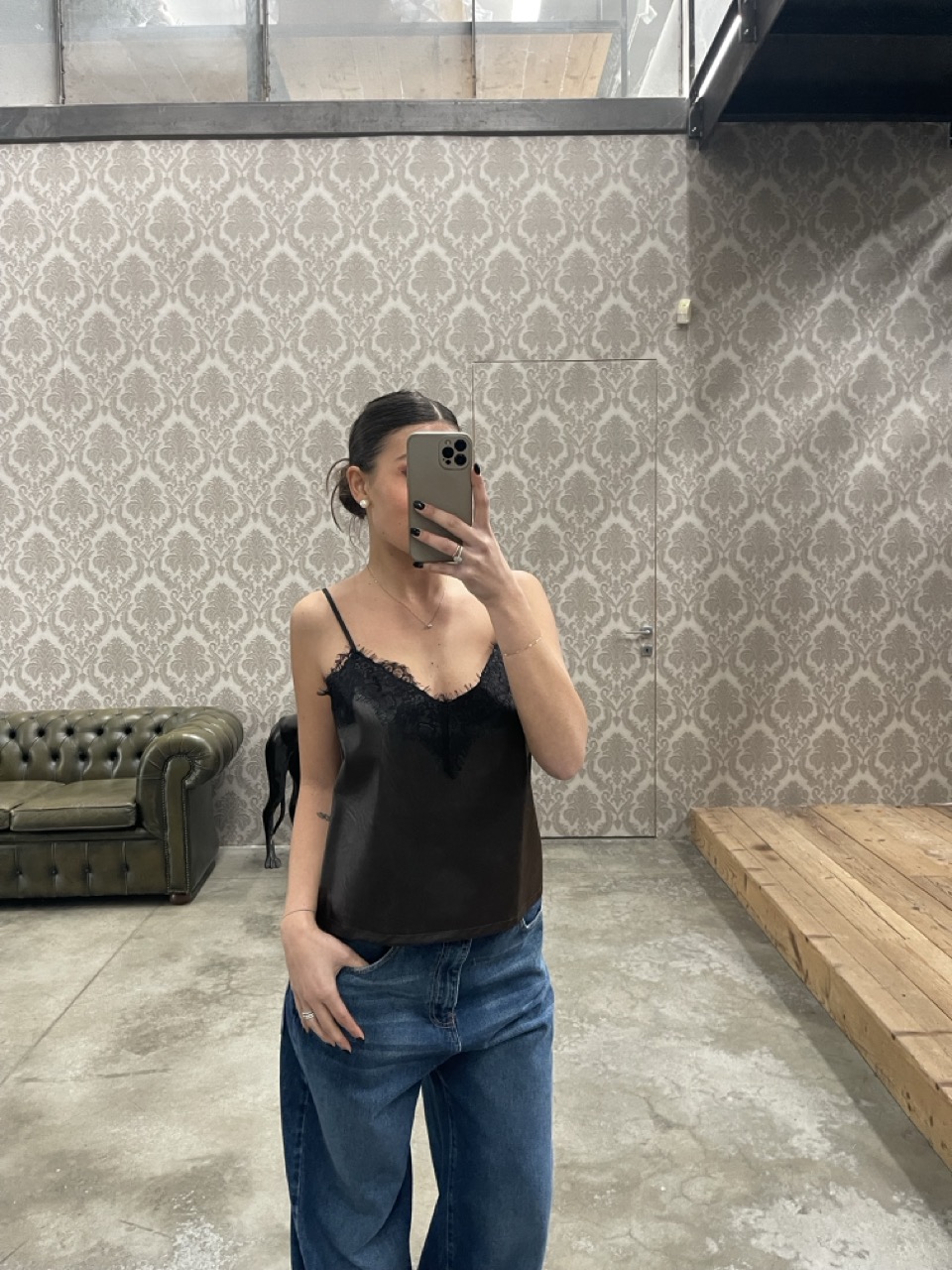 Top in ecopelle NANEBI con pizzo e spalline fini regolabili.