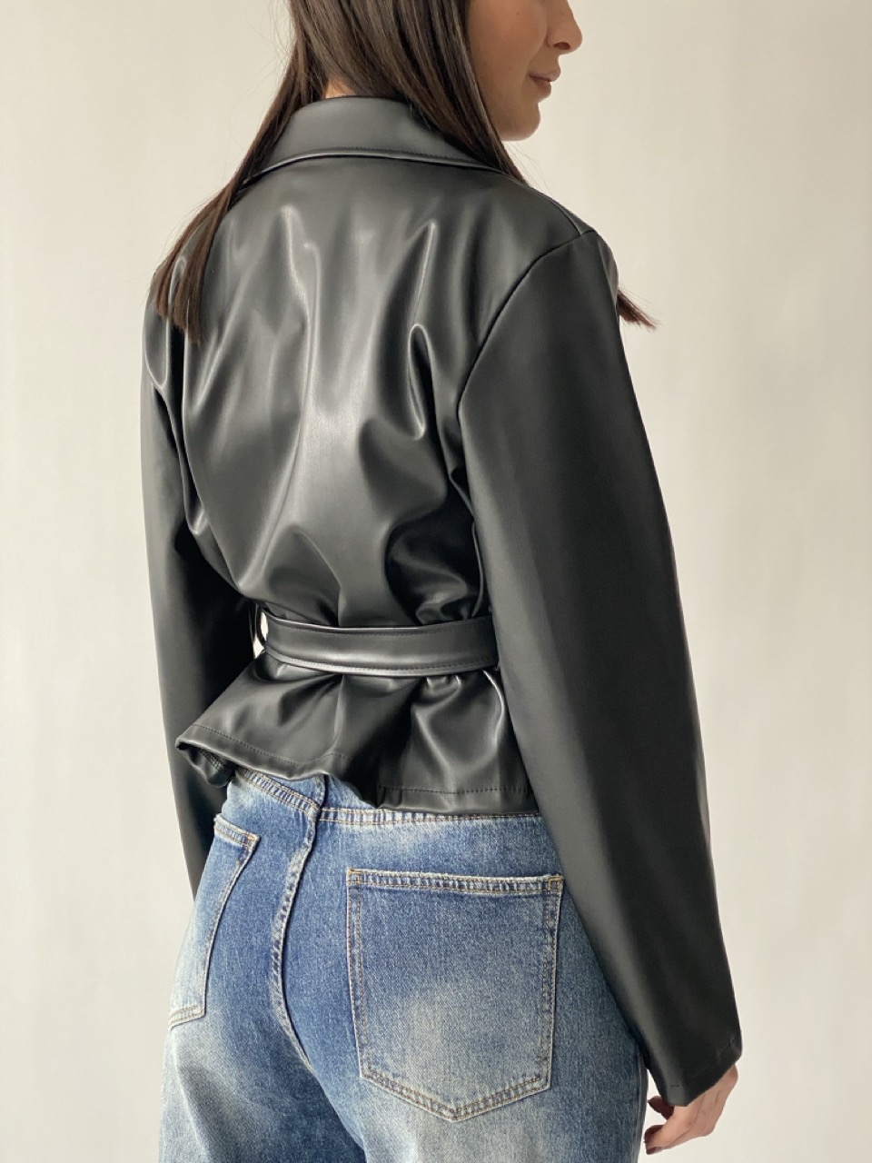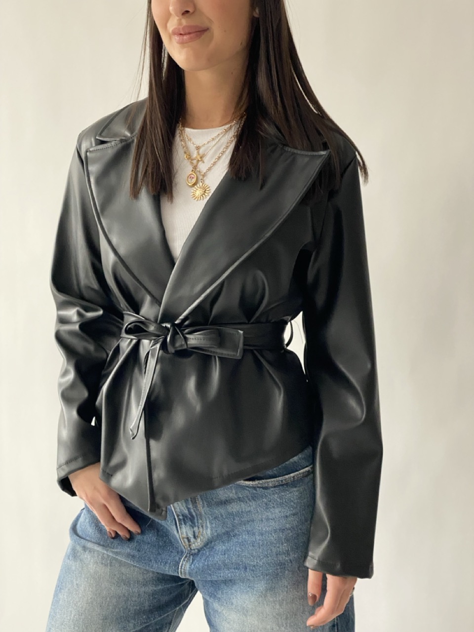 Trench in ecopelle con cintura in vita.