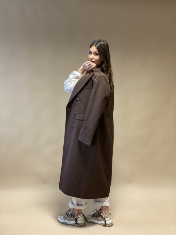 Trench lungo SUSY MIX foderato modello doppiopetto con tasche laterali.